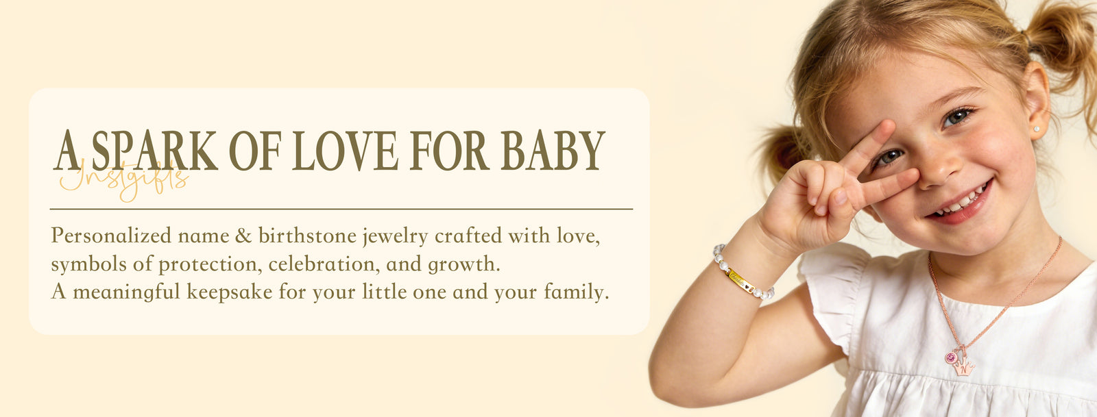Explore our collection of stunning Personalized Baby Jewelry! From delicate pearl bracelets to charming birthstone necklaces, our hypoallergenic jewelry is perfect for babies and toddlers. Find the perfect keepsake for your little one with custom name pieces that make wonderful gifts.