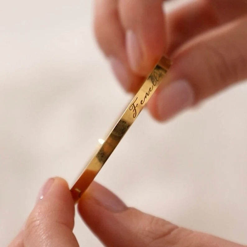 Each bangle can be custom engraved with your child’s name, initials, or a meaningful date — creating a cherished piece that symbolizes love and connection.