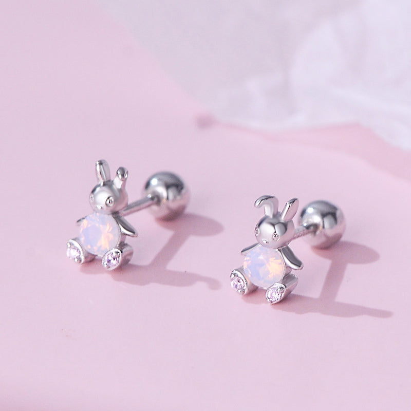 Baby, Children, Girls 925 Sterling Silver Crystal Bunny Earrings - Safty Screw Backs