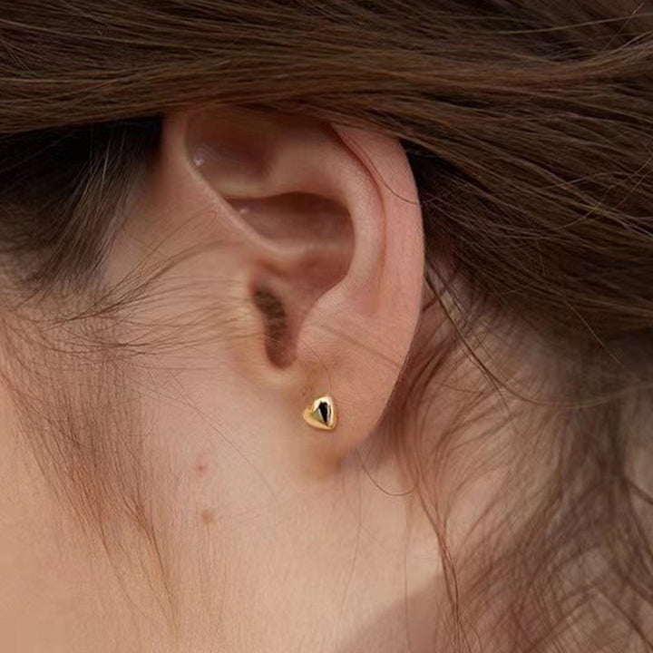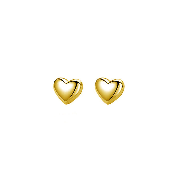 Our adorable heart-shaped stud earrings! They come in three colors, gold, silver, and rose gold. The shape is delicate, classic, and sweet, perfect for little girls. Made of hypoallergenic sterling silver, it is safe for kids with sensitive skin. Comes with beautiful packaging for your gift-giving.