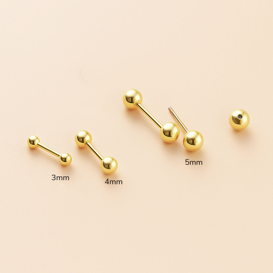 Classic Ball Baby Earrings – 925 Sterling Silver Gold‑Plated Ball Studs with Safety Screw Backs