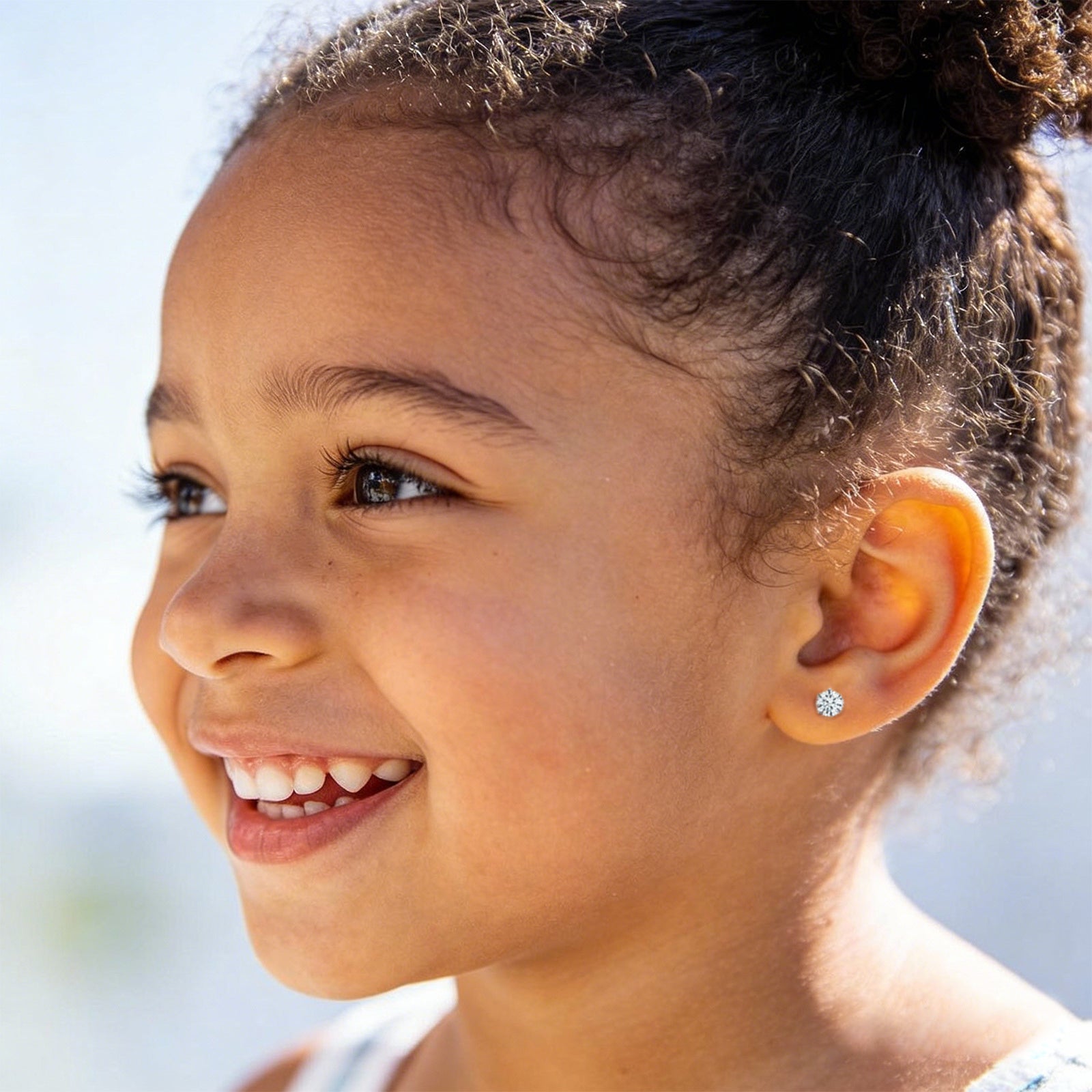 3-5mm Classic Setting CZ Sterling Silver Earrings for Girls - Hypoallergenic, Safe Backing, Sea Life Jewelry