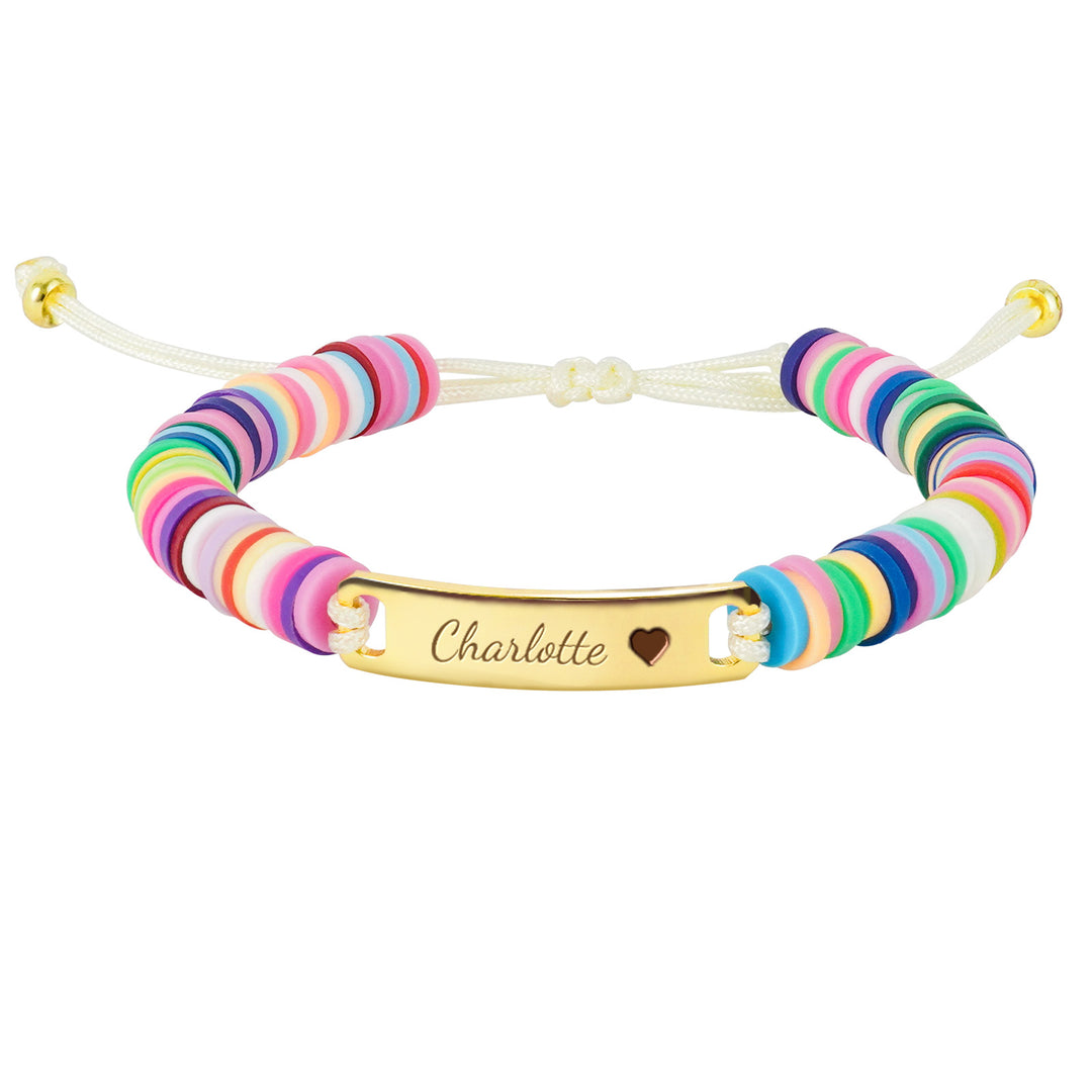 This Personalized Clay Bead Kids Bracelet features vibrant clay beads and can be engraved with a baby's name and cute symbol. The adjustable length (13cm to 25cm) ensures a perfect fit as your child grows. Crafted from eco-friendly materials, this bracelet is both playful and durable, making it the perfect birthday gift, holiday surprise, or keepsake. Handwoven with care and beautifully packaged, it's ready for any special occasion.