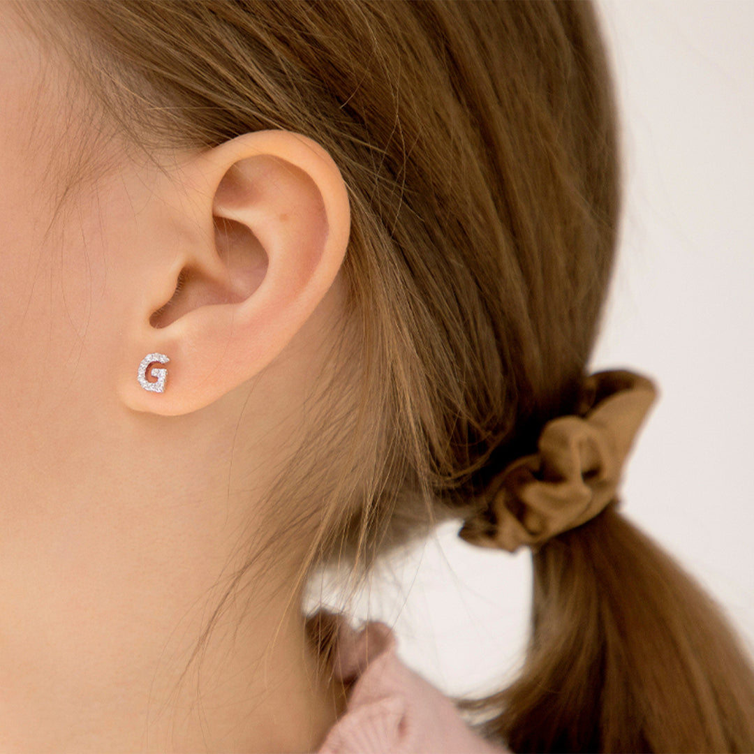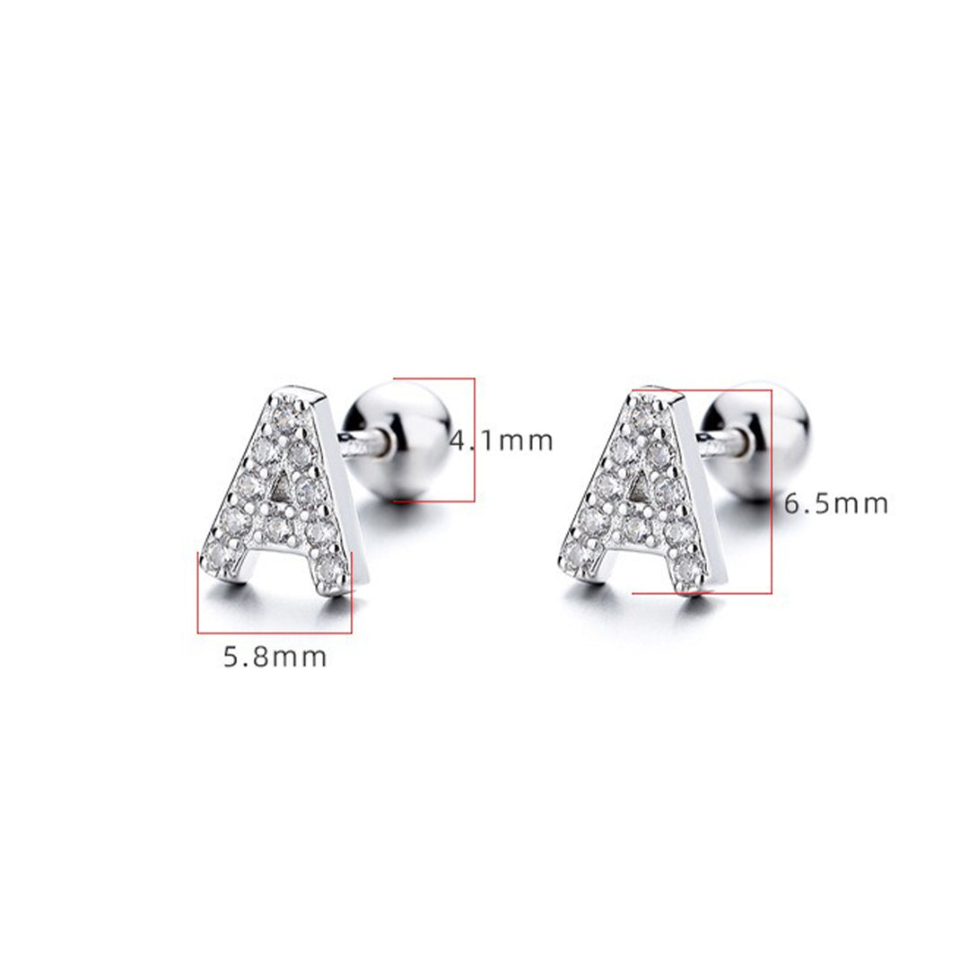 Featuring an initial set with a clear cubic zirconia stone, made of hypoallergenic 925 sterling silver, and featuring secure and comfortable screw-back earring backs, this pair of delicate and small initial zirconia stud earrings is perfect for a young, stylish girl who loves sparkling jewelry. These adorable monogrammed earrings make the perfect gift for any occasion, especially for back-to-school. Comes with a gift box for easy gift-giving!
