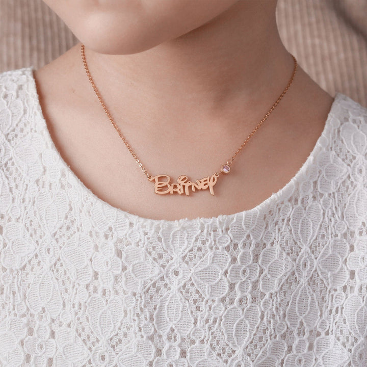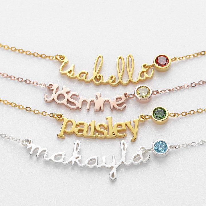 Sterling Silver Princess Style Customized Name and Birthstone Baby/Children/Teens Chain Necklace