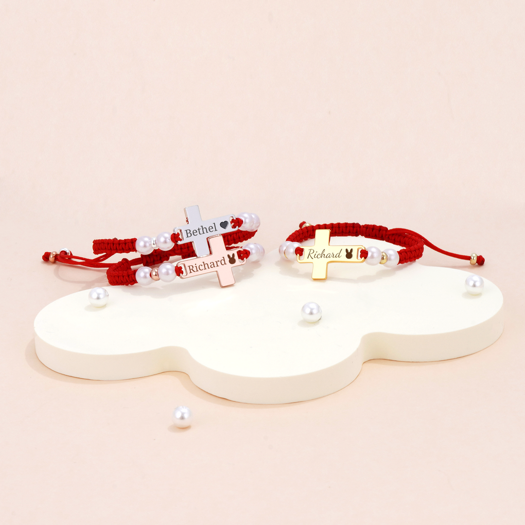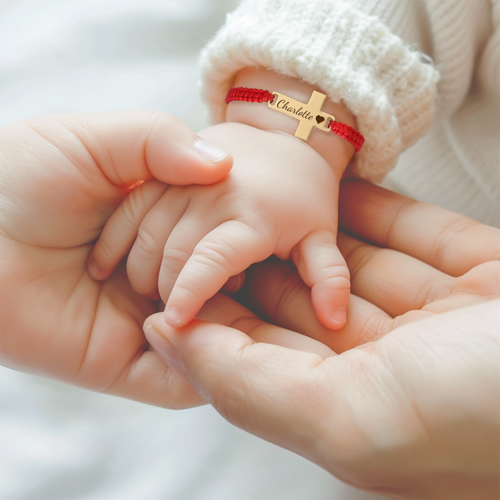 Hand Braided Red Rope Personalized Baby Name Cross Bracelet