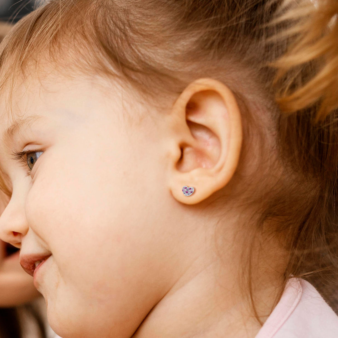 Delicate and dazzling, the Heart of Crystals Girls' Earrings are designed to captivate. Featuring a sterling silver base adorned with sparkling pink and purple zircon crystals, these earrings radiate charm and elegance. Lightweight and hypoallergenic, they ensure comfort and safety for sensitive ears. Perfect for special occasions or everyday sparkle, these earrings make a thoughtful gift for birthdays, holidays, or any celebration. Add a touch of brilliance to her jewelry collection with these timeless heart-shaped studs.