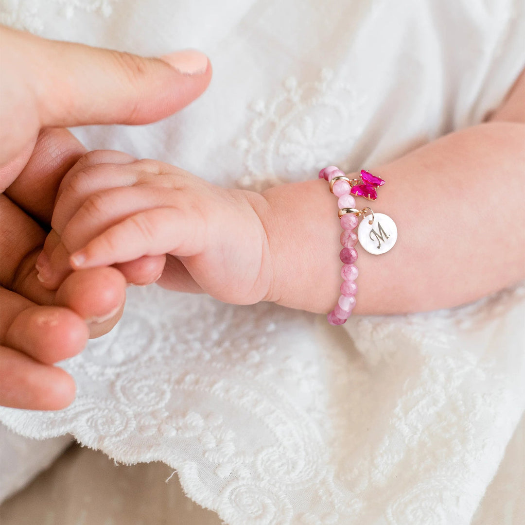 - Mother-of-Pearl Initial Charm: The delicate mother-of-pearl charm can be engraved with your child's initials, adding a unique personal touch to each bracelet.