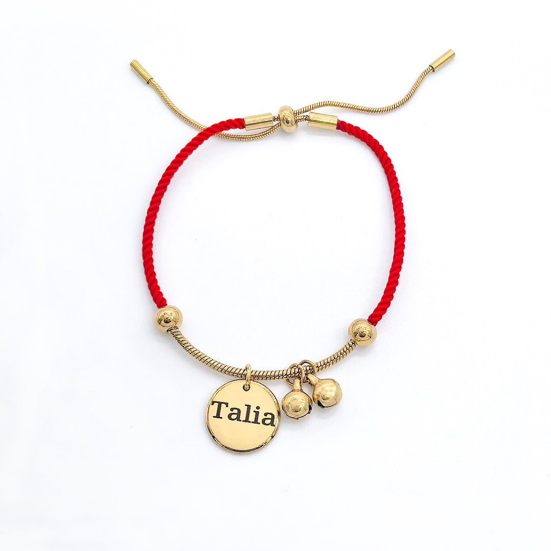 Adjustable Lucky Red Rope Engravable Name Children's Bell Bracelet
